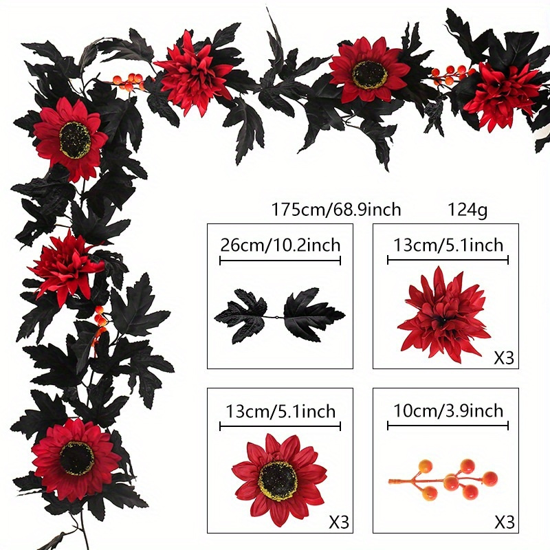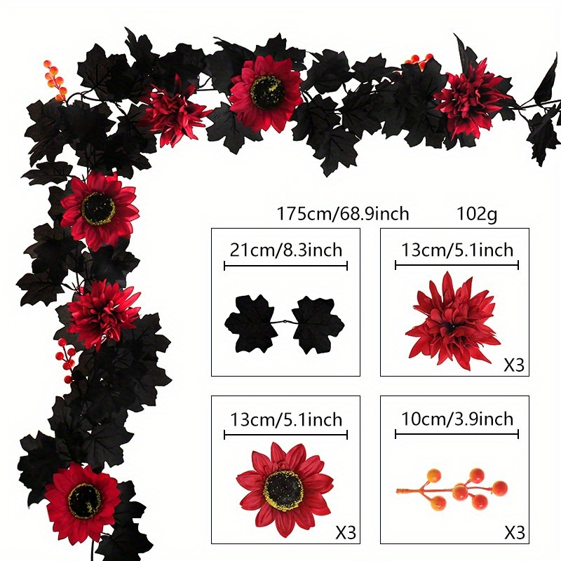 Bring the colors of autumn indoors with this 5.7 ft Fall Maple Leaf Garland. Designed with a rich mix of artificial maple leaves, sunflowers, pumpkins, and berries, it’s the perfect accent for mantels, staircases, doorways, or tables. Each element captures the warmth of harvest season, creating a vibrant display for Thanksgiving, parties, or everyday fall décor.